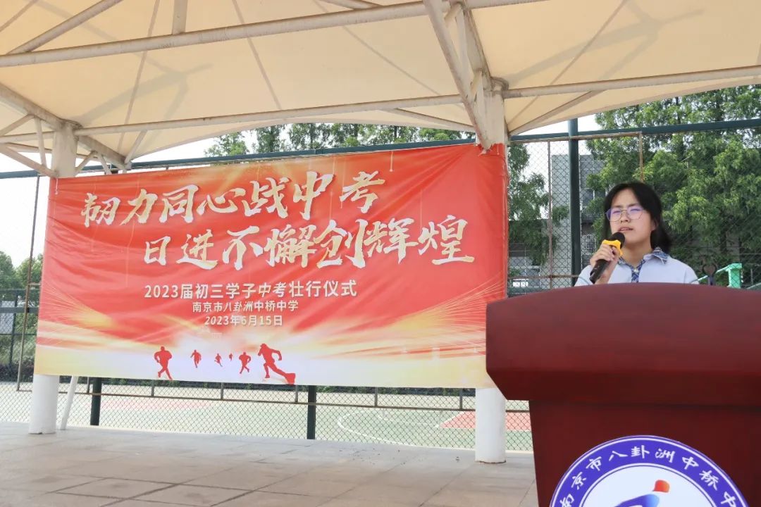 惜时逐梦历三载,扬鞭亮剑战今朝。6月15日,南京市八卦洲中桥中学举行2023届中考壮行仪式,为即将奔赴中考战场的初三全体学生鼓劲加油,壮行助威。