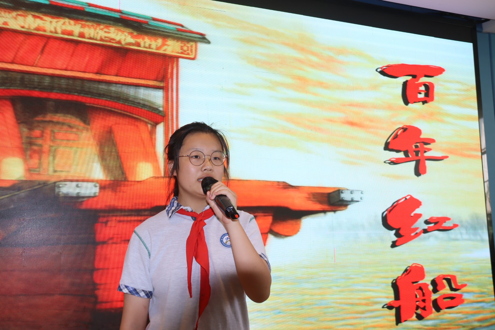 活动伊始,在嘹亮的国歌声中,同学们庄严地向国旗敬礼。八(3)班吴婷婷的微团课《从红船初心到少年使命》,八(1)班罗梓萌和八(4)班李欣雨的歌曲百年红船版《错位时空》,带我们领略红船精神百年的奋进征程。微视频《回忆青春》,带着同学们回想起曾经的步伐。“时光信箱”,也将为我们的青春年华,留下奋斗的足迹,明年的今天,将共同回望曾经的你。紧接着,全体少先队员面向火红的队旗,最后一次高唱《中国少年先锋队队歌》,最后一次呼号。带着不舍和留念,同学们取下红领巾,整齐地叠放起来,这意味着同学们进入了人生新的成长阶段。微视频《什么是青春》带着同学们逐渐了解青春的含义。