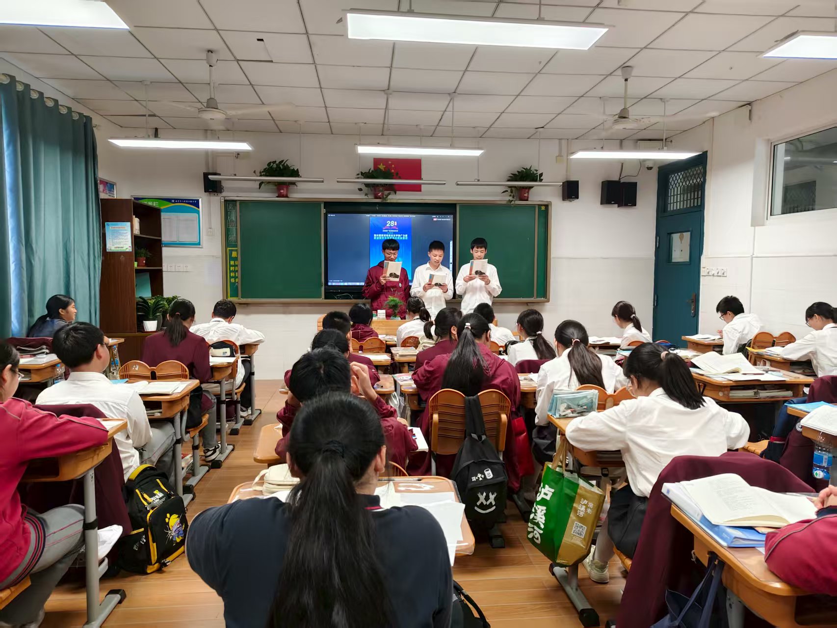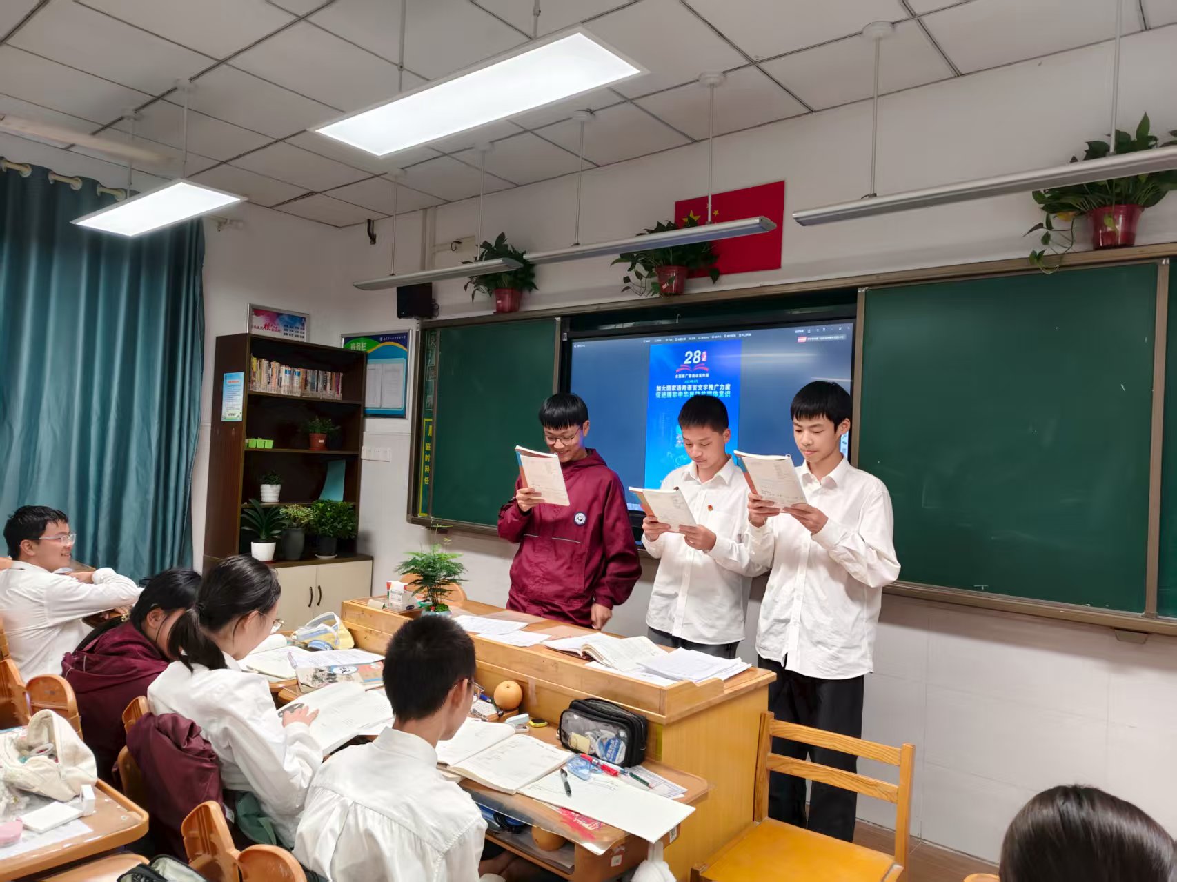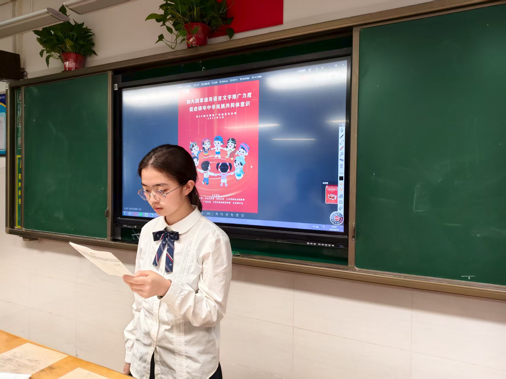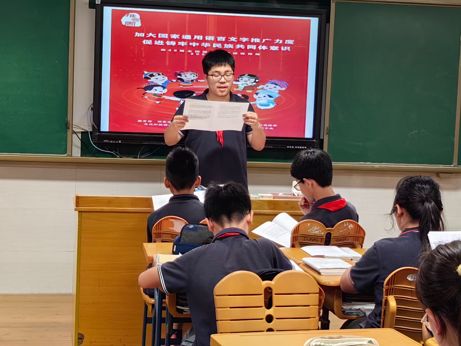 九年级同学则在各班开展了普通话诗歌创作活动,用规范的语音和丰富的表达,抒写青春梦想与家国情怀,展现出良好的语言运用能力和文化素养。