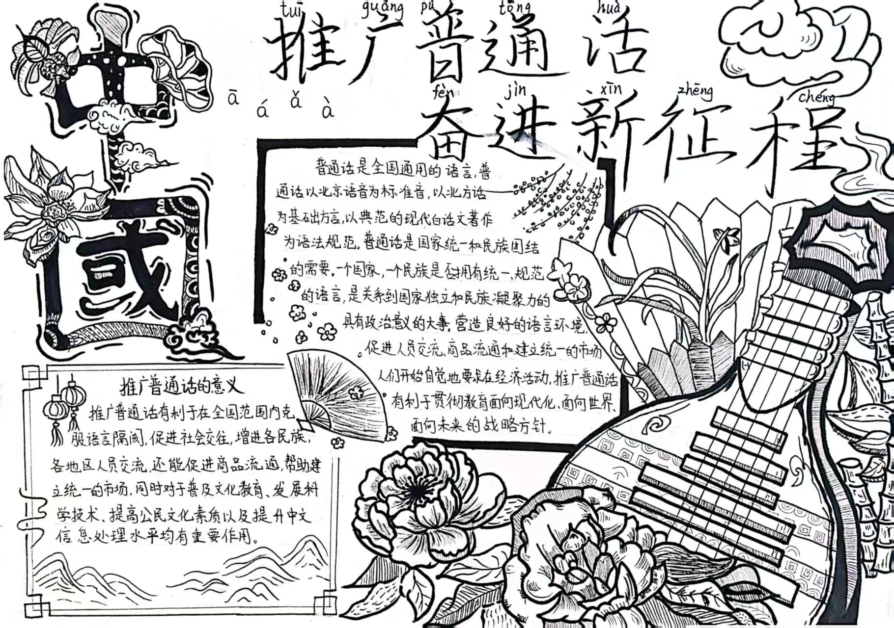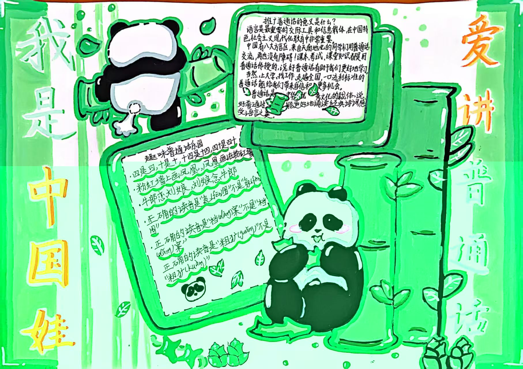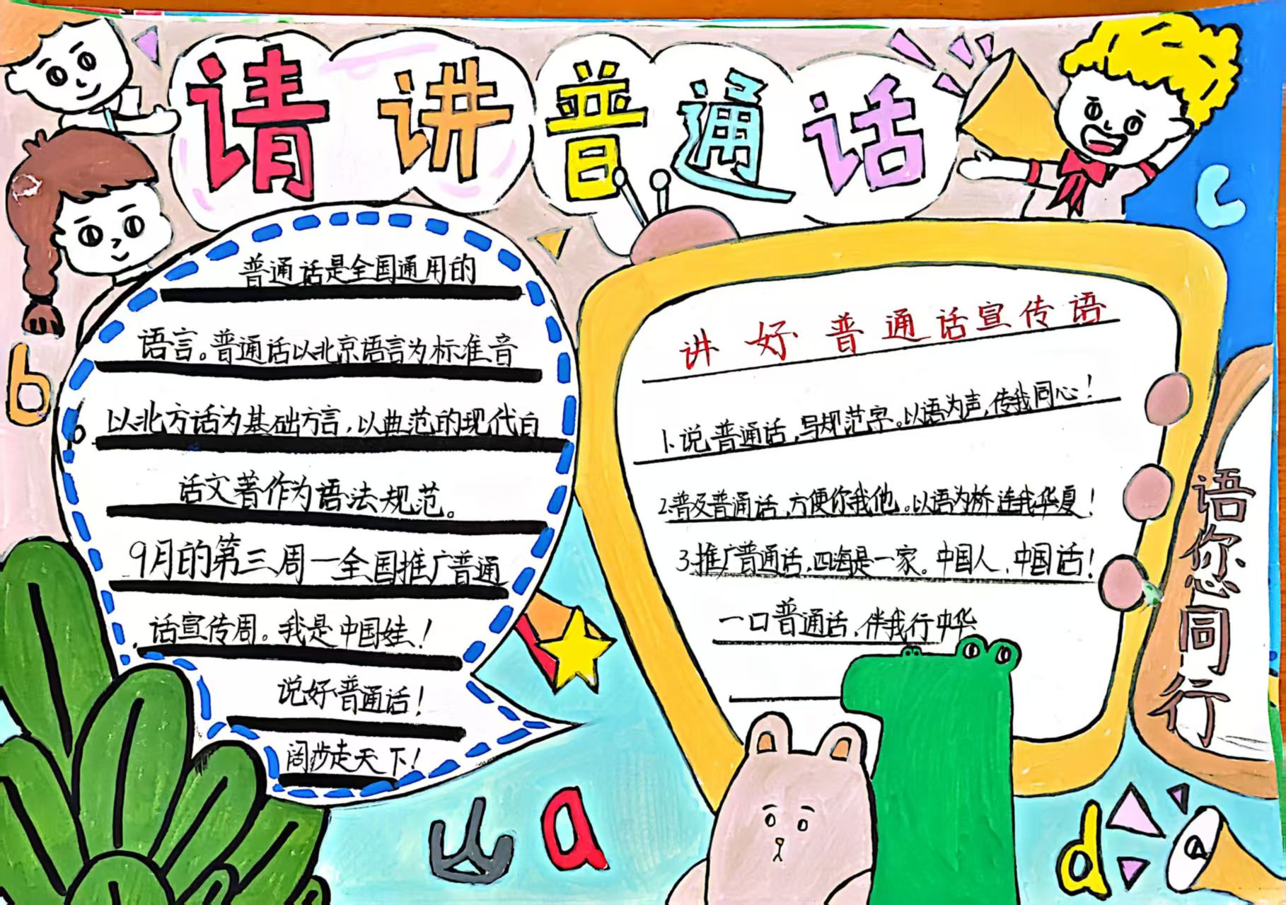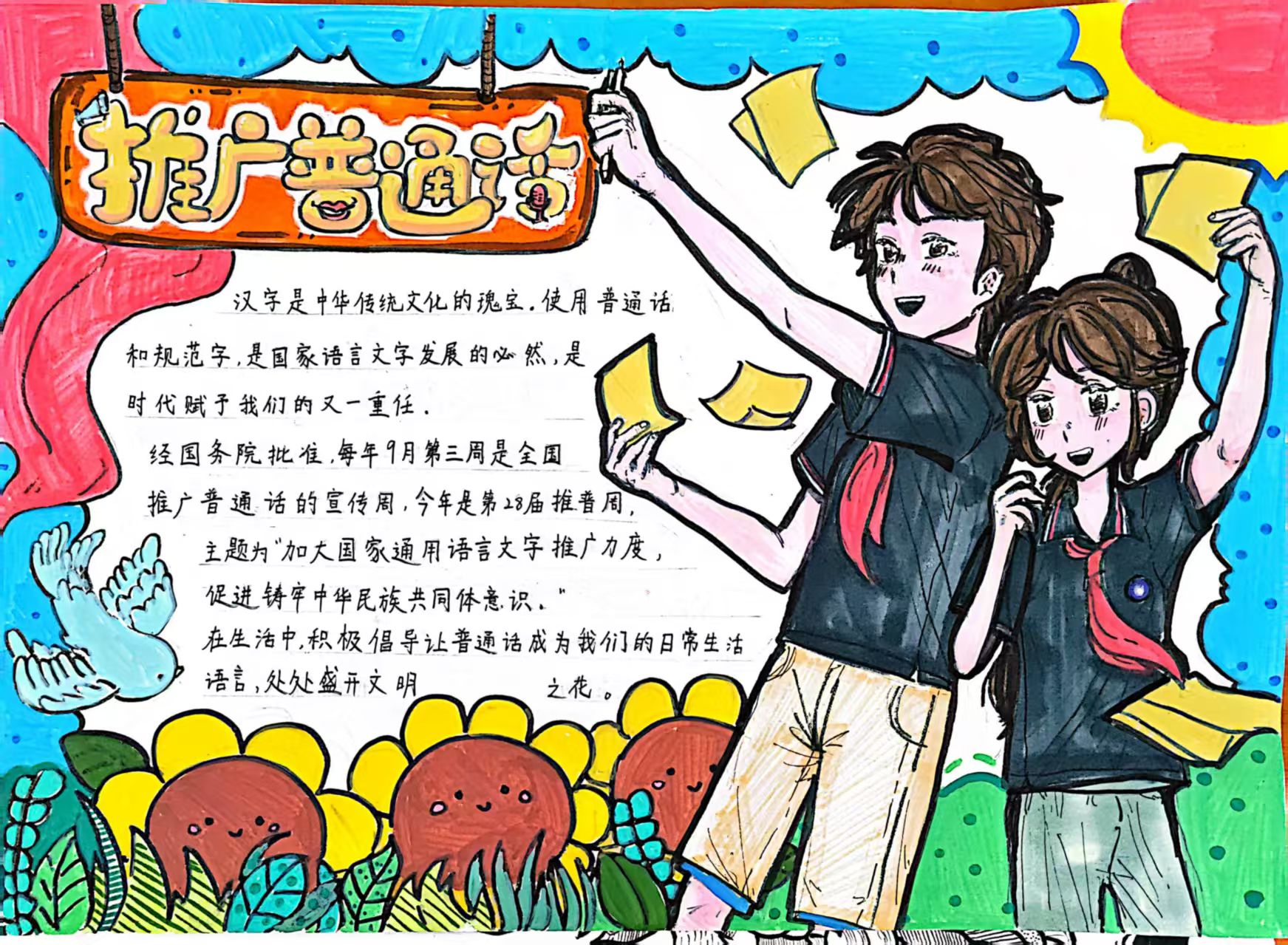 七年级同学还开展了推广普通话手抄报和宣传绘画比赛,通过图文并茂的方式展现普通话的魅力,增强了语言学习的趣味性和感染力。