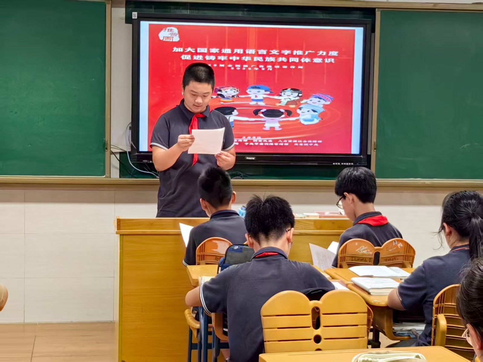 为深入贯彻落实国家语言文字政策,增强学生语言规范意识与文化自信,我校于915-22-组织开展“加大推普力度,筑牢强国语言基石”主题普通话推广活动,覆盖七、八、九三个年级,形式多样,内容丰富多彩。